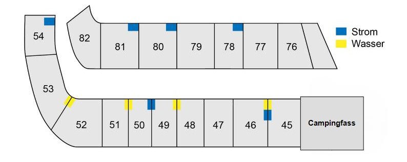 – Plätze einzeln parzelliert mit Strom- und Wasseranschluss